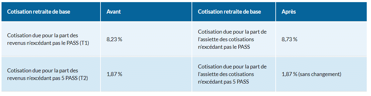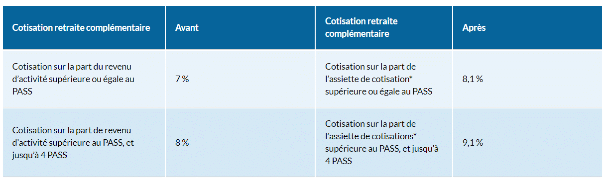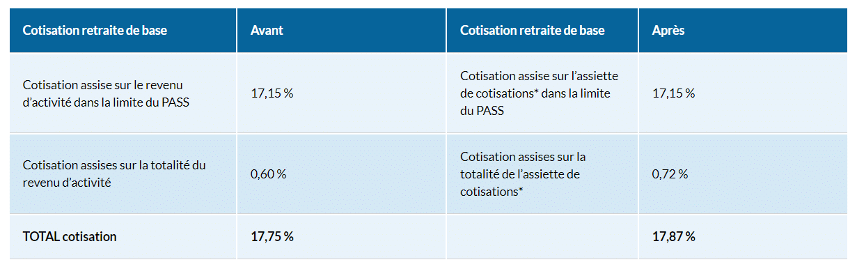 *Vos cotisations sont désormais assises sur la nouvelle assiette de cotisations. Elles étaient auparavant assises sur la totalité de votre revenu d’activité.