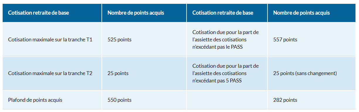 Cette cotisation vous donne droit à des points de retraite de base, qui seront convertis à terme en pension de retraite. Le nombre de points maximum que vous pouvez acquérir évolue également :